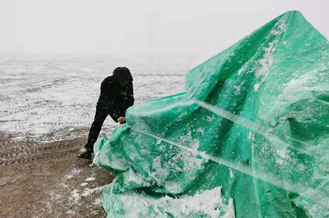 團隊頂著風雪作業(yè)