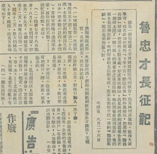 毛澤東看過這篇內容簡潔、語言樸實、條理清晰的調查報告后倍加推崇,并特地寫了一段按語: