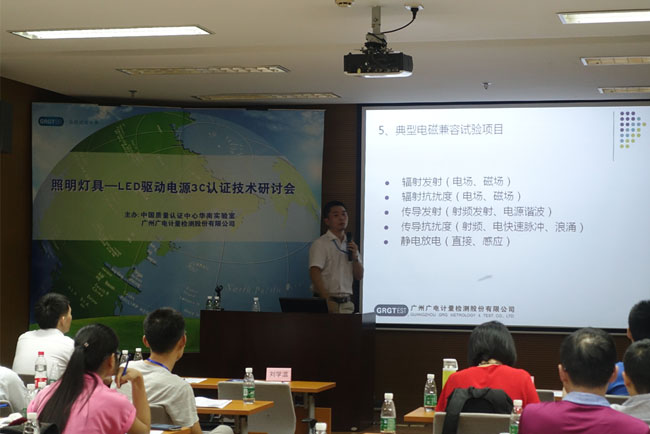 在GRGT劉道云總助致辭后,研討會正式召開。中國質量認證中心華南實驗室劉學溫高級工程師以及GRGT張雄、騰金金高級工程師分別針對“安全檢測認證介紹及技術運用分析”、“電磁兼容檢測標準介紹及技術運用分析”以及“燈具國際認證技術解決方案”做專題研討。研討過程講解生動、理論與實例結合、互動良好,得到在場各企業代表的一致認可。